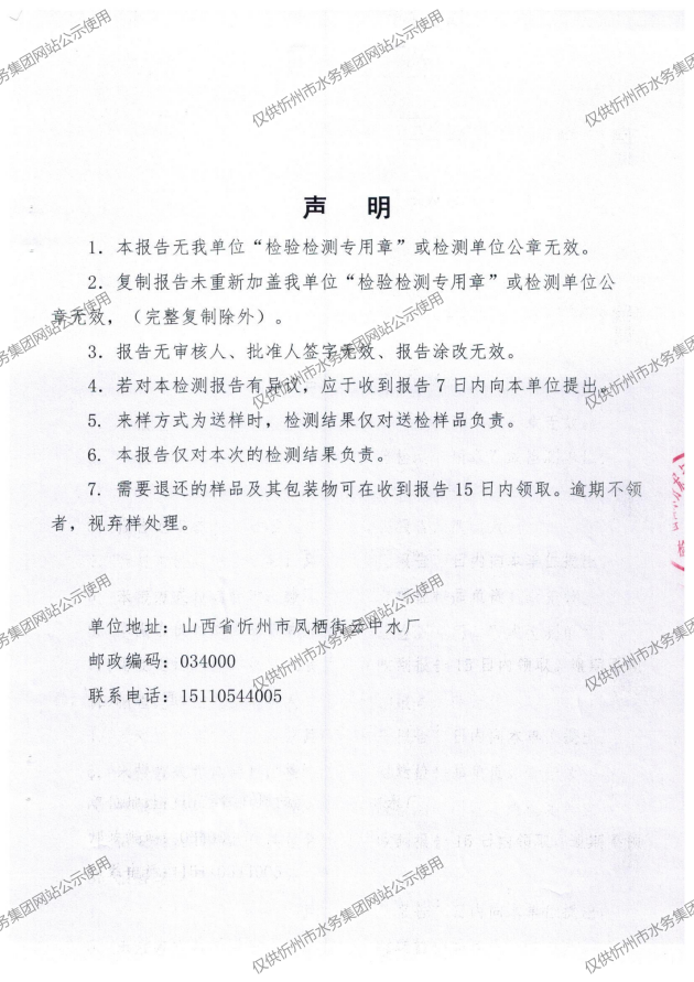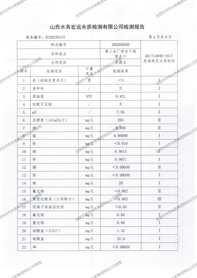 忻州城區(qū)公共供水水源水、出廠水、管網(wǎng)水、管網(wǎng)末梢水2025年5月份水質(zhì)信息公示