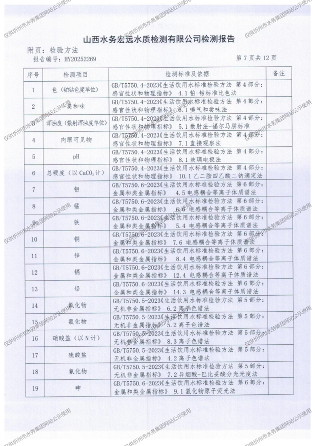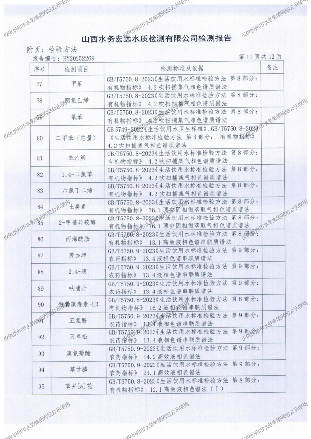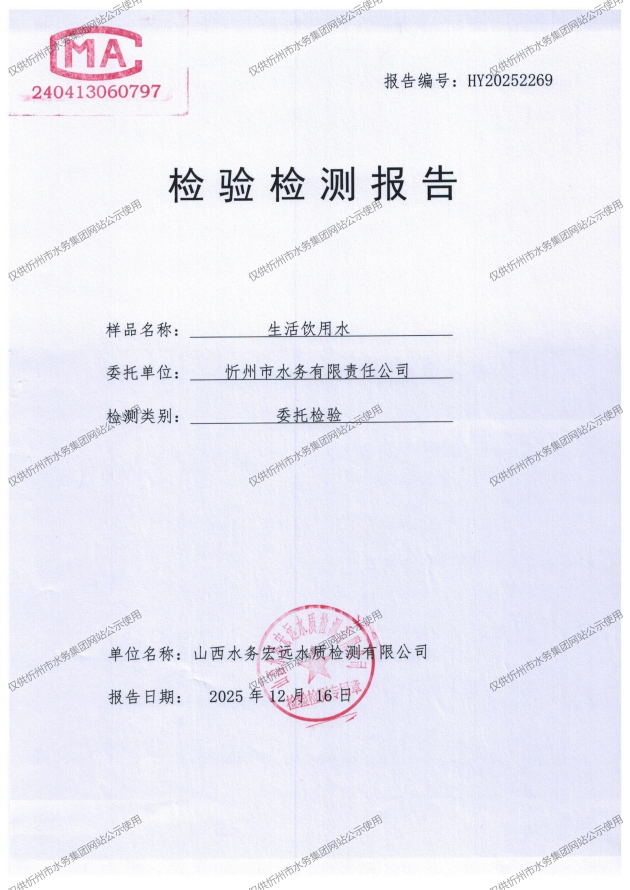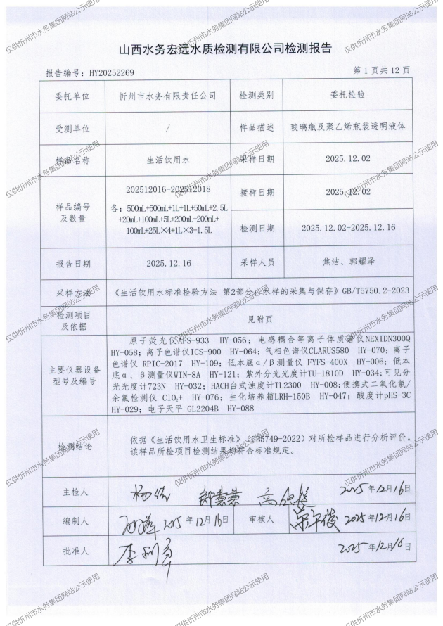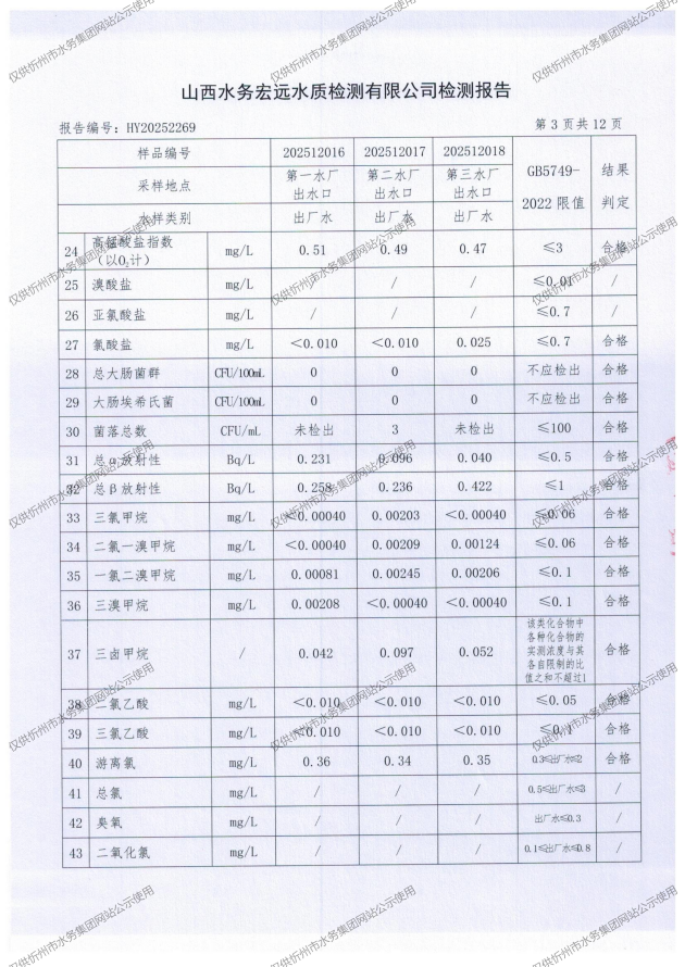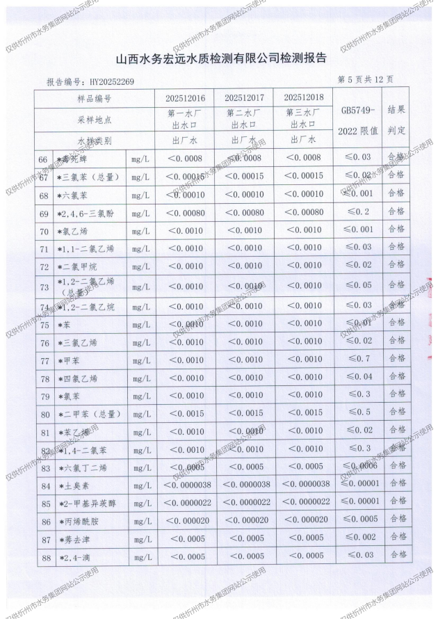 2025年忻州城區(qū)公共供水南水廠、三水廠、云中水廠出廠水97項水質全分析