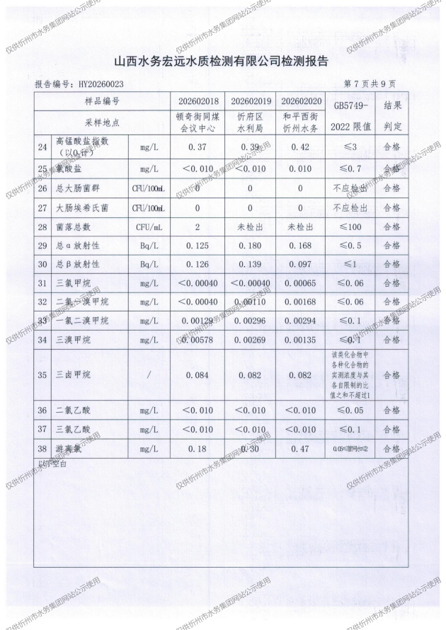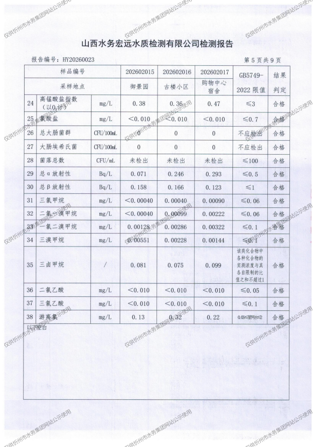 忻州城區(qū)公共供水水源水、出廠水、管網(wǎng)水、管網(wǎng)末梢水2026年2月份水質(zhì)信息公示