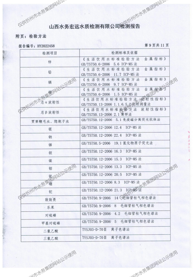 2022年忻州城區(qū)公共供水南水廠、三水廠、云中水廠出廠水106項水質(zhì)全分析