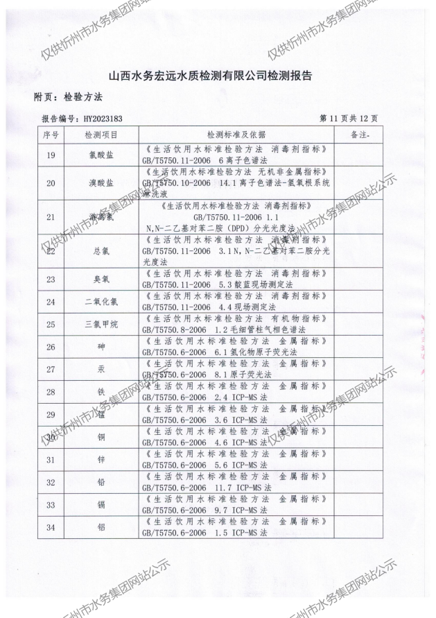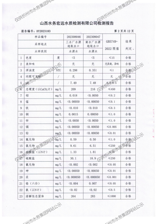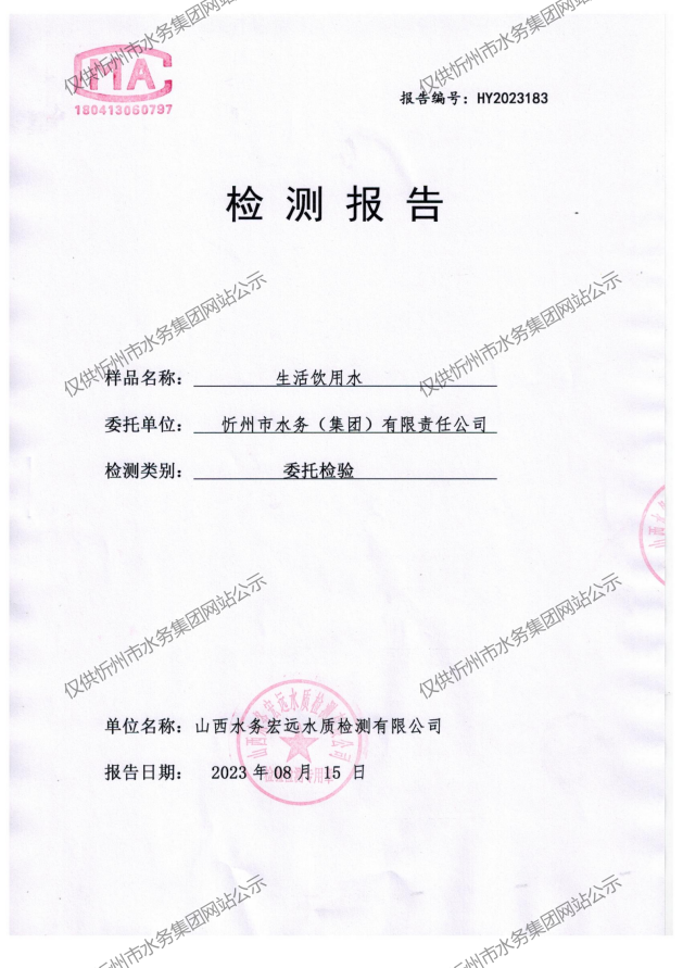 忻州城區(qū)公共供水水源水、出廠水、管網(wǎng)水、管網(wǎng)末梢水2023年8月份水質(zhì)信息公示